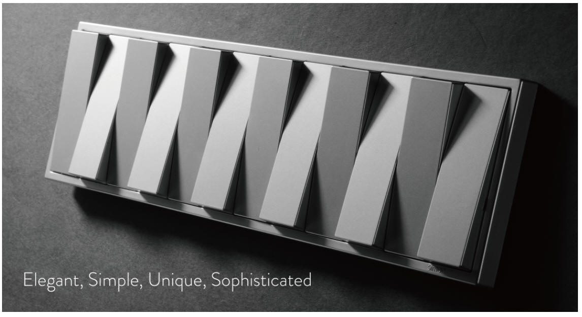 SIMPLE AND ELEGANT AS A PIANO Its extensive face with vertical and proportionate lines gives a comfortable and desirable form. Adopting the latest technology, the switch and the socket have the same size. The visual effect is more aesthetically pleasant. EXQUISITE COLORS The matt and techno color effect can adapt to any interior style and gives a sophisticate feeling. Three color options: white, champagne and grey.